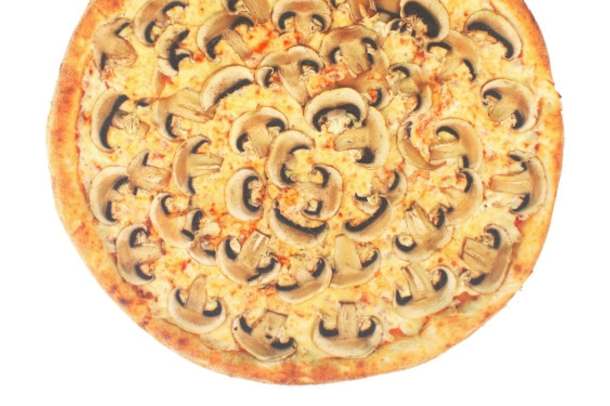 Фирменное тесто, соус томатный, сыр Моцарелла, грибы, тесто традиционное. Вес пиццы: 25 см - 270 гр, 30 см - 400 гр, 35 см - 550 гр.