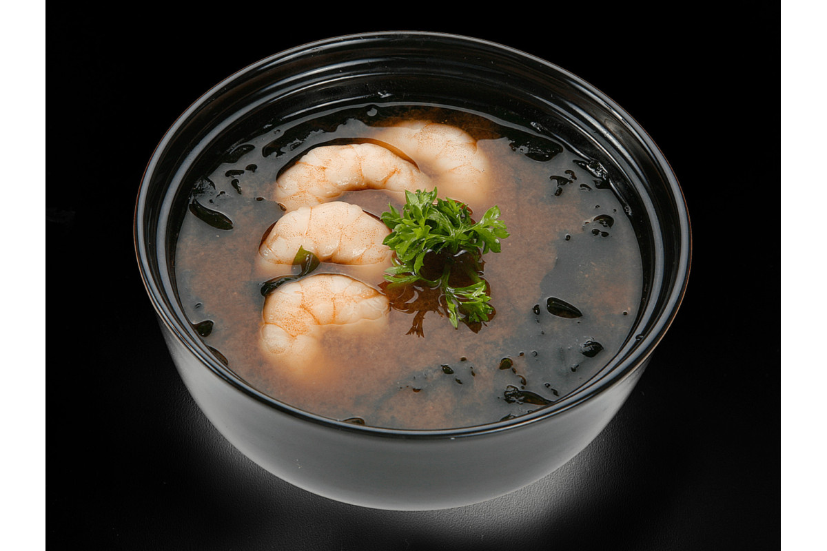 Вес: 330 г. Водоросли вакаме, бульон даши, паста широмисо, тофу, лук порей. ..