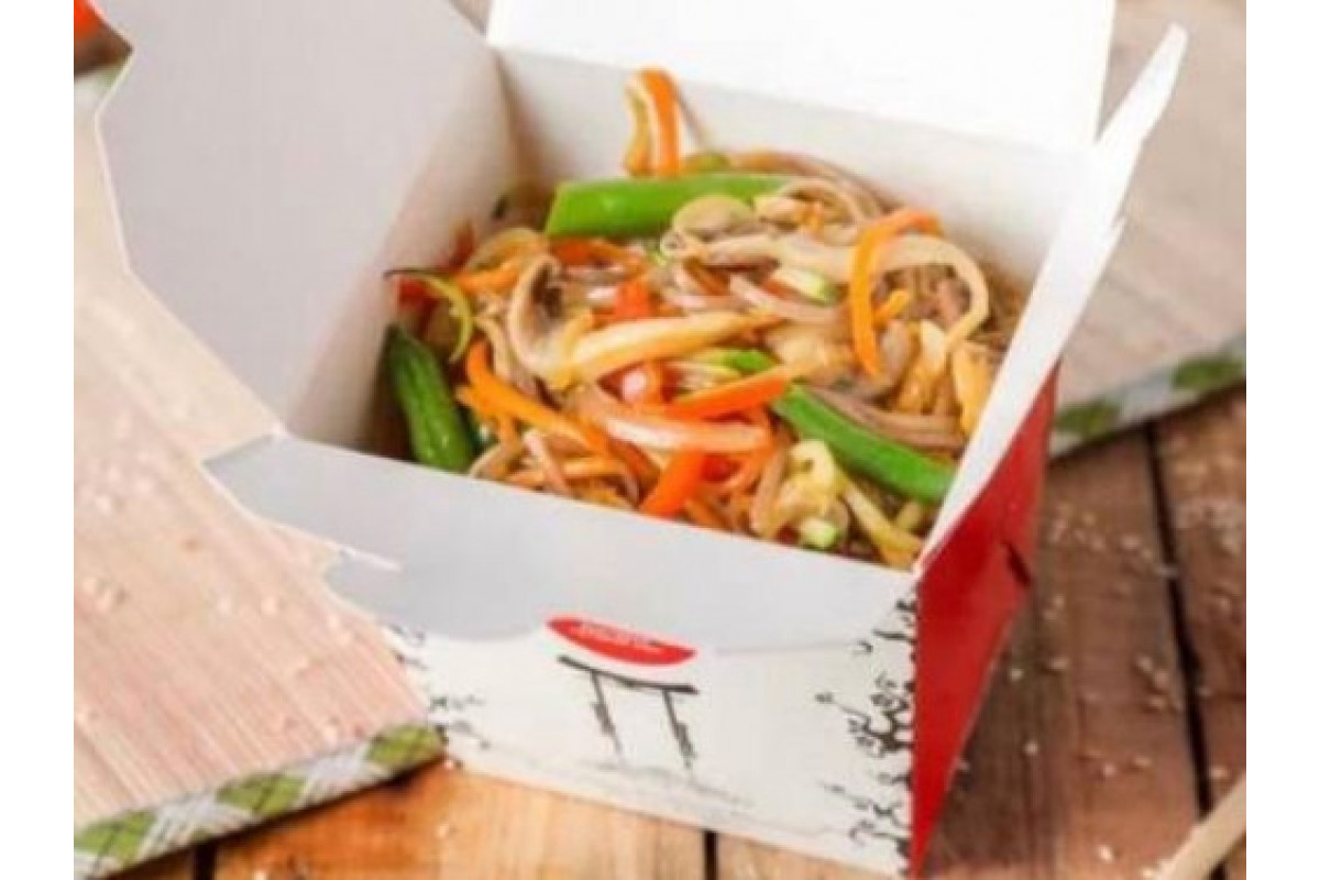 Лапша на выбор, болгарский перец, грибы, соус терияки.